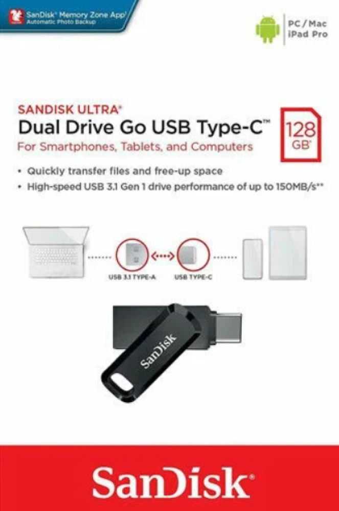 فلاش ميموري سانديسك الترا بمنفذ تايب سي و يو اس بي 128iG