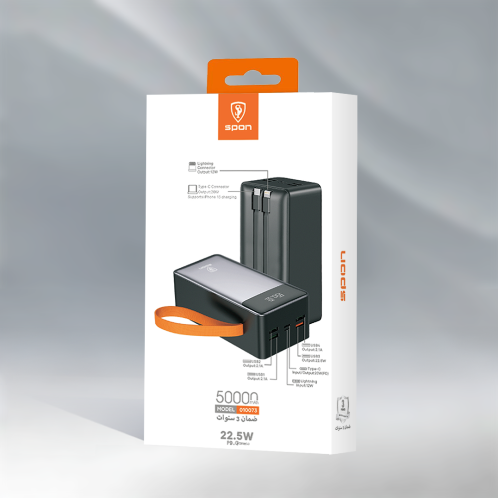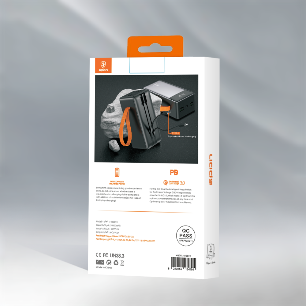 يتمتع بسعة كبيرة تبلغ 50000 مللي أمبير لشحن الأجهزة بفعالية وضمان استمرارية الاستخدام.